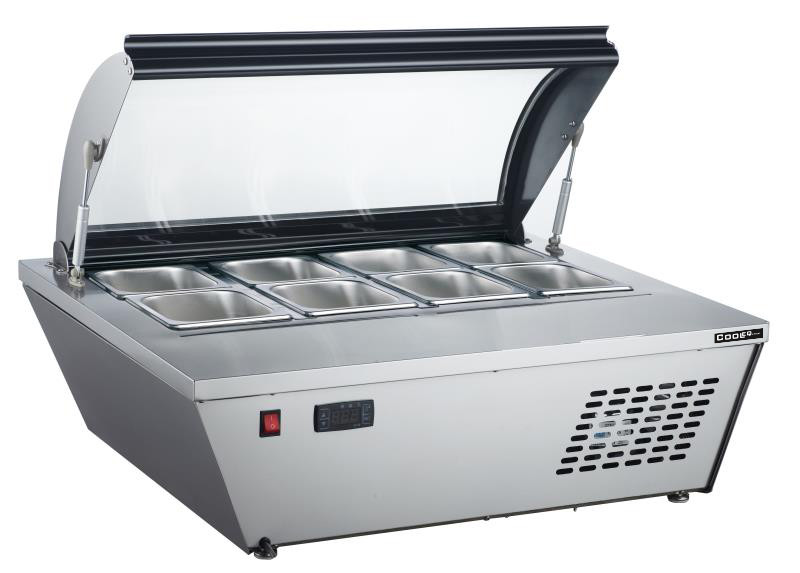 Витрина для мороженого Cooleq используется на предприятиях общественного питания и торговли для демонстрации и хранения мороженого, сорбета и йогурт-мороженого. Модель оснащена регулятором температуры и стеклянной дверцей.