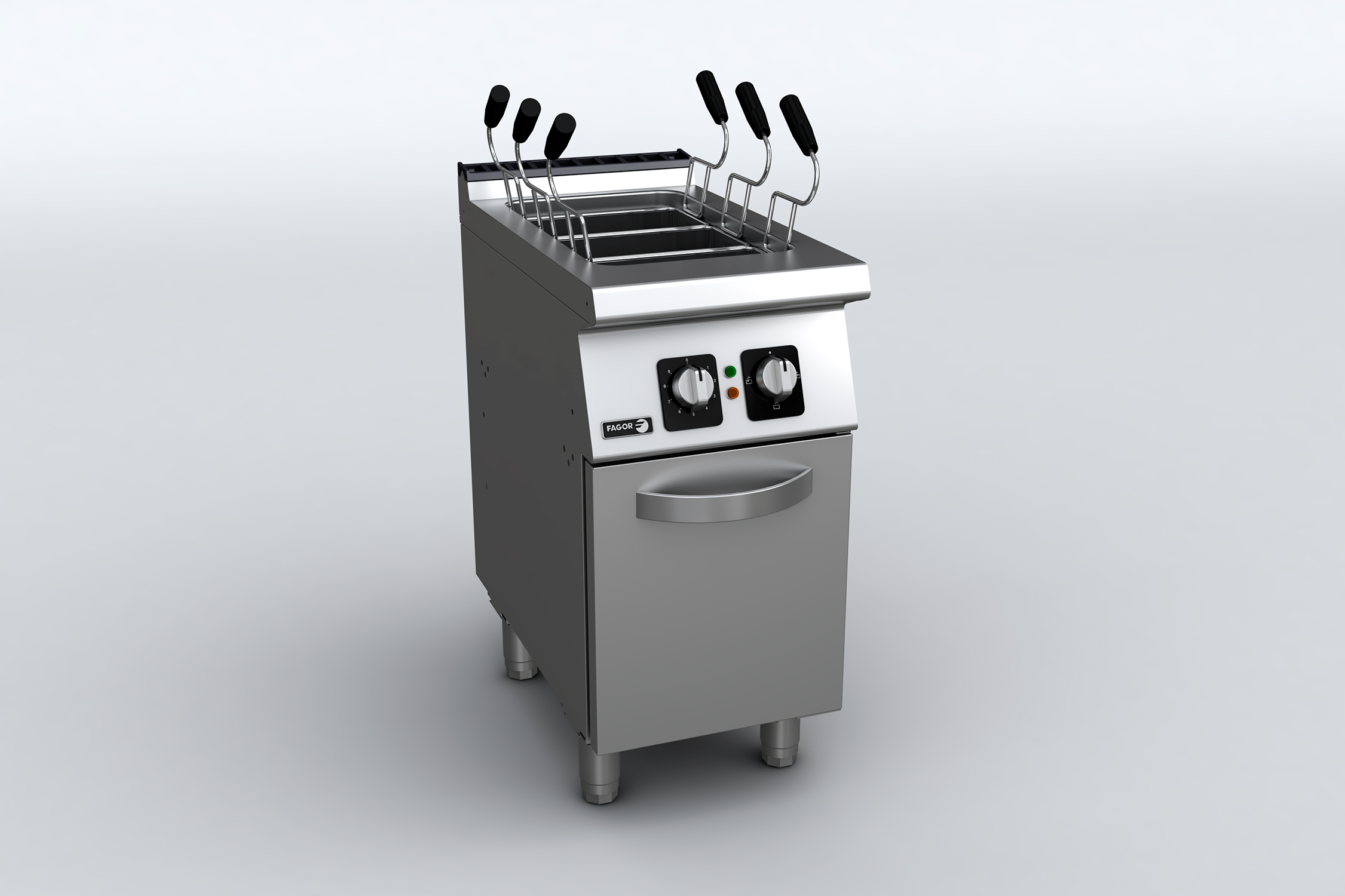 Электрическая макароноварка Fagor CP-E7140 функциональна и надежна, отличается высокой производительностью (около 1 кг макаронных изделий на каждые 10 литров) и может применяться для различных целей. Помимо макаронных изделий в ней можно отваривать рис или овощи. Оснащена электромеханической системой залива воды и шаровым вентилем для слива в канализацию.