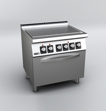 Плита электрическая Fagor C-E711 700 серии. Оснащена сплошной поверхностью с 4мя нагревательными элементами, мощностью 2,6 кВт каждый. Духовой шкаф GN 2/1 со статическим нагревом мощностью 6 кВт. Три уровня направляющих для различных типов готовки.