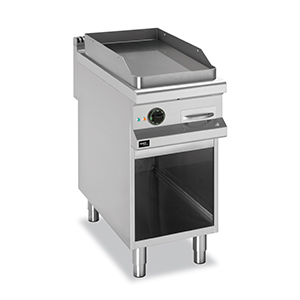 Модель оснащена гладкой жарочной поверхностью из чугуна, толщиной 15 мм, с одной зоной нагрева, размером 380х720 мм. Нагрев производится армированными нагревательными элементами из нержавеющей стали.